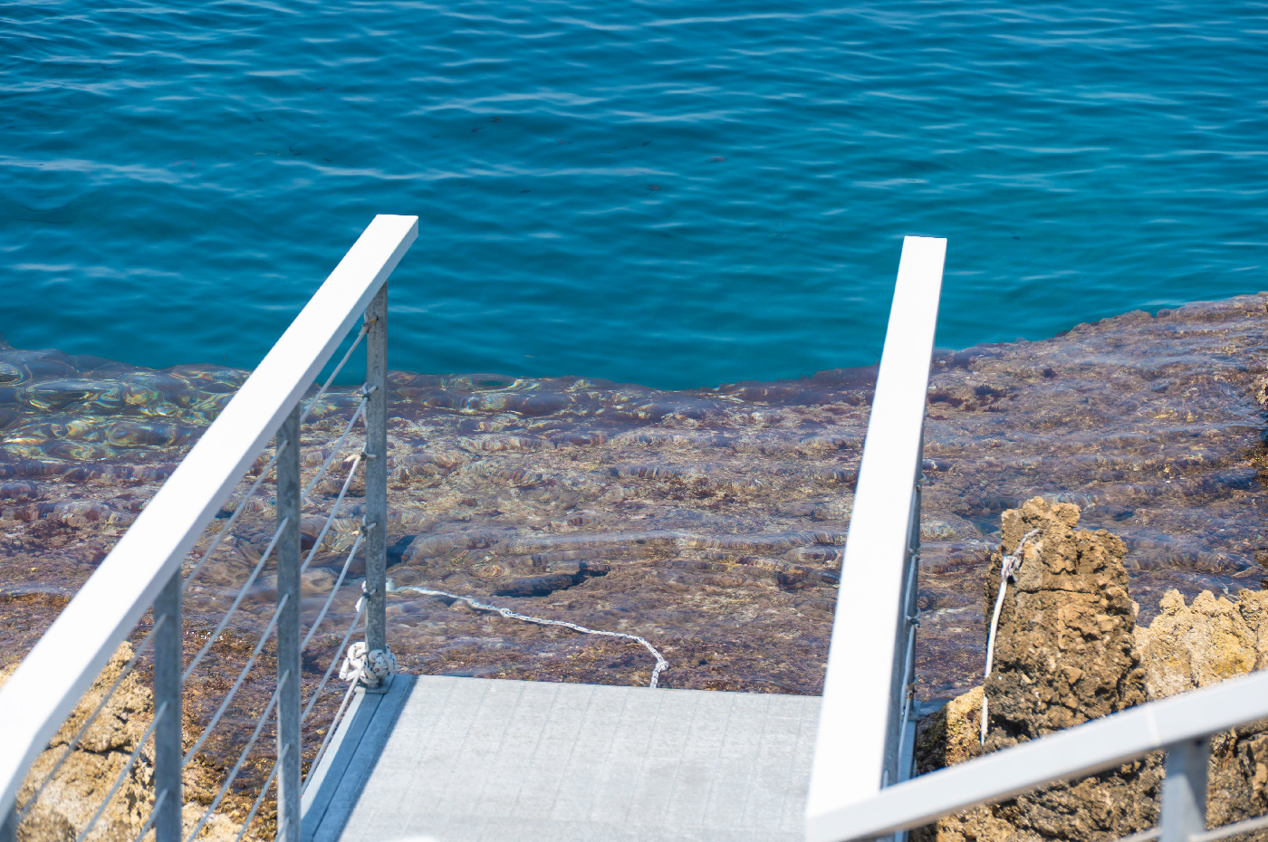 Per accedere comodamente al mare, gli ospiti possono utilizzare le pratiche scalette e la pedana in legno, pensate per rendere l’ingresso in acqua semplice e piacevole. Una soluzione ideale per chi desidera immergersi nelle acque cristalline in tutta sicurezza e relax.